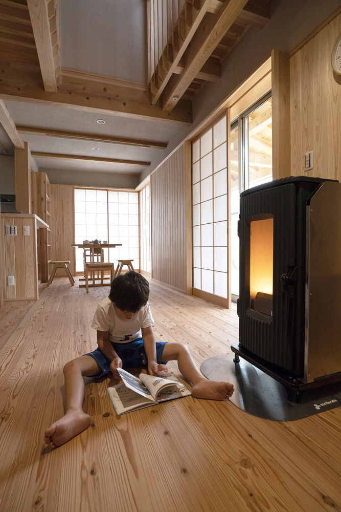 和風、洋風などどんな空間にも合うペレットストーブ。気になる方は越谷にある千葉工務店モデルハウスにお越しください(要予約)。ペレットストーブ、薪ストーブの実演も行っております。