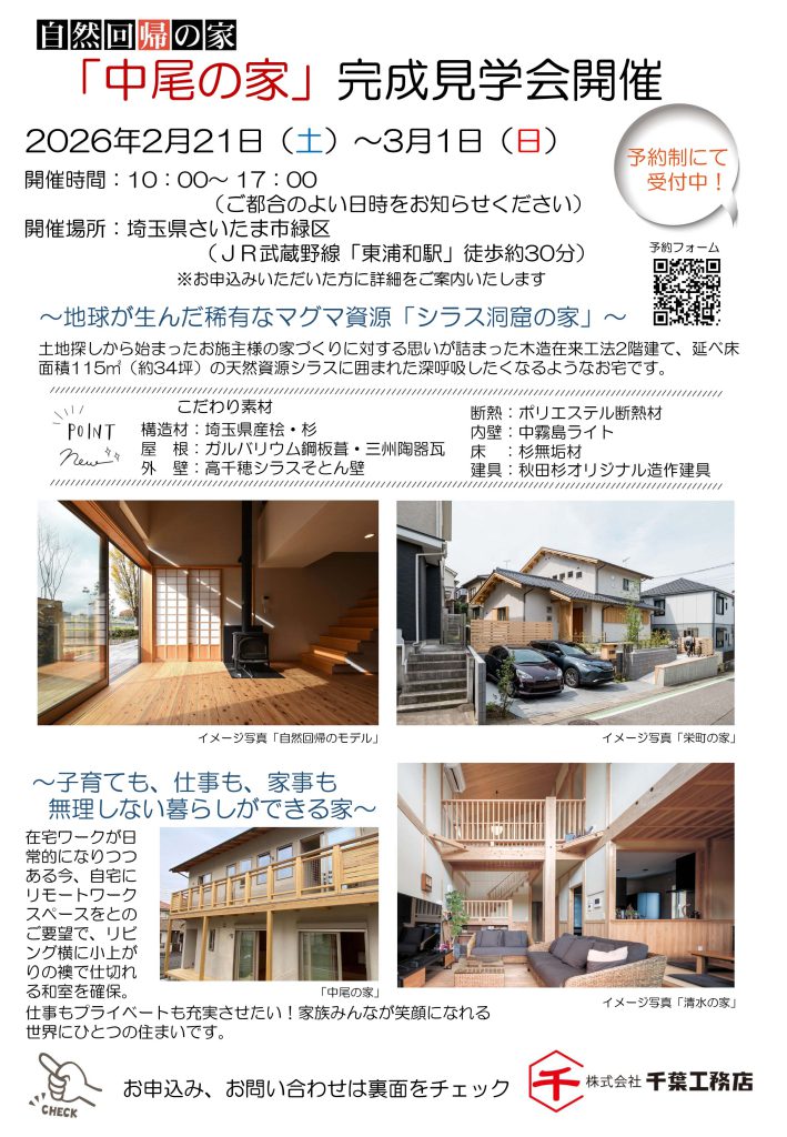 自然素材を使い体にも環境にもやさしい住宅を是非ご覧ください。ご予約はこちらから ➡「中尾の家」完成見学会(外部サイトに移動します)